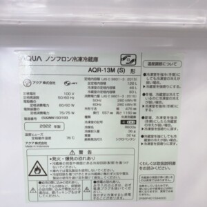 千葉県勝浦市へ出張買取 AQUA 冷蔵庫 AQR-13M 2022年製 きれいな状態のため高価査定しました