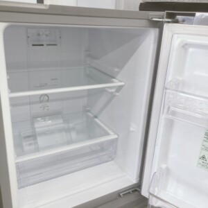 お預かりしたAQR-13Mは全体的にきれいな状態で、外観にも目立つへこみや大きな傷は見受けられませんでした。庫内も清掃が行き届いており、棚板・ケースなどの付属パーツもすべて揃っている状態でした。使用感も少なく、冷蔵室・冷凍室ともに気になるニオイや汚れも確認されません。年式が比較的新しいこともあり、中古市場でも再販しやすいコンディションと判断しました。