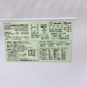 査定したSJ-W357J-Nは2022年製の比較的新しいモデルで、外観には大きな傷やへこみは見られませんでした。日常使用に伴う軽微な擦れは確認されましたが、全体的にはきれいに使用されている印象でした。