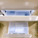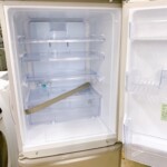 庫内の棚板やドアポケット、野菜ケース、冷凍引き出しなどの付属パーツも揃っており、庫内は清掃された状態で清潔感がありました。冷却動作も正常で、家庭用冷蔵庫として問題なく使用できる状態でした。