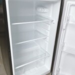 査定したTH-138L2-BKは2019年製の2ドアタイプの冷凍冷蔵庫です。庫内の棚板やドアポケットは揃っており、内部は比較的きれいな状態で清掃もされていました。