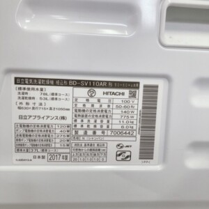 今回は埼玉県児玉郡美里町にお住まいの40代女性・主婦(親子世帯/持ち家一戸建て)のお客様より、HITACHI ドラム式洗濯乾燥機 BD-SV110AR(2017年製)を出張買取にてご依頼いただきました。