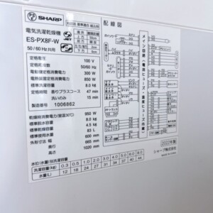 SHARPのES-PX8F-Wは2022年製と比較的新しいモデルであり、洗濯容量8kgの縦型洗濯乾燥機として中古市場でも需要がある製品です。今回の個体は外装に軽微な使用感はあったものの、槽内の状態が良好で動作も問題がない点を高く評価しました。