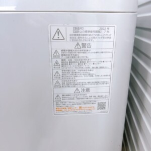 拝見した洗濯機は2022年製の比較的新しいモデルで、外観には目立つへこみや大きな傷は見受けられない良好な状態でした。操作パネル周辺やフタ部分に多少の使用感はあるものの、全体としてきれいに使用されている印象です。洗濯槽内部も清潔に保たれており、給水ホースや糸くずフィルターも揃っていました。動作確認では洗い・すすぎ・脱水の各工程が正常に動作しており、再販可能なコンディションでした。