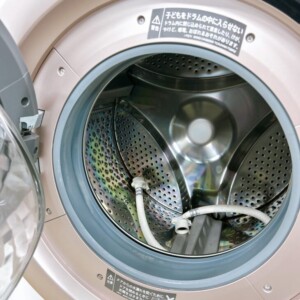 拝見したES-S7G-NLは2022年製の比較的新しいモデルで、外観には日常使用による細かな擦れや軽微な使用感が見られる程度でした。ドラム内部は比較的きれいな状態で、洗濯槽のステンレス部分にも大きな汚れやサビは確認されませんでした。動作確認では洗い・すすぎ・脱水・乾燥の各機能が正常に動作しており、実用面で問題のない状態でした。給排水ホースなどの基本付属品も揃っており、中古再販が十分可能なコンディションと判断しました。