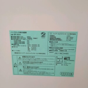 東京都葛飾区でHaier ノンフロン冷凍冷蔵庫 BR-85A(2022年製)を出張買取 庫内きれいな状態のため適正価格で査定しました