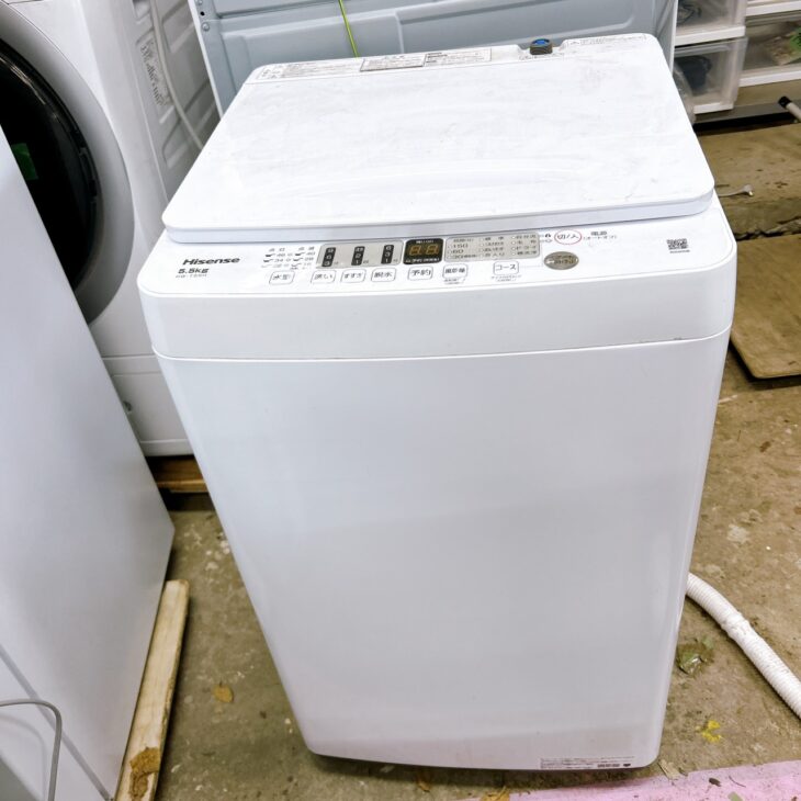 今回ご依頼いただいたHisenseの全自動電気洗濯機HW-T55Hは、2023年製と比較的新しい年式で、基本動作にも問題が見られませんでした。洗濯槽内に大きな破損や不具合はなく、給水ホースも付属していたため、再使用に向けた条件は整っている印象でした。