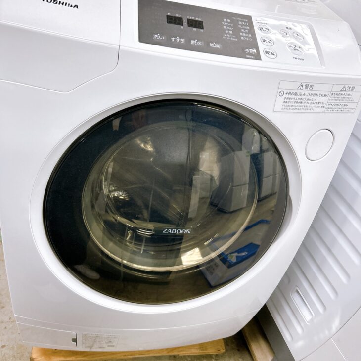 お買取した商品は東芝の人気シリーズ「ZABOON」に属するドラム式洗濯乾燥機 TW-95G9Lです。洗濯容量9.0kg、乾燥容量5.0kgの家庭用モデルで節水性能や低振動設計を特徴とした機種です。本体外観には日常使用による細かな汚れや軽微な擦れが見られましたが大きなへこみや破損は確認されませんでした。ドラム内部は比較的綺麗な状態でパッキン部分にも目立つカビ汚れは見られず、基本的な動作も問題なく確認できました。また操作パネルの表示やボタン操作にも不具合はなく、乾燥機能付きドラム式洗濯機として中古市場でも需要が見込める状態でした。