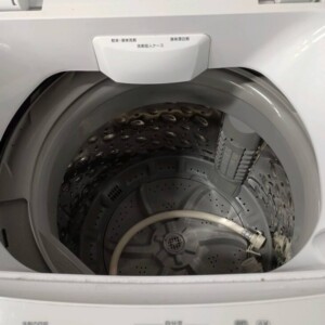 洗濯槽内部も比較的清潔に保たれており、糸くずフィルターなどの基本パーツも揃っていました。動作確認では給水・洗濯・脱水まで問題なく作動しており、家庭用としてまだ十分に使用できるコンディションでした。