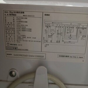 今回は東京都府中市にお住まいの30代男性(会社員・単身・賃貸マンション)より、ニトリ 6kg全自動洗濯機 NTR60(2022年製)を出張買取にてご依頼いただきました。