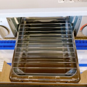 バーナー周辺には通常使用による軽微な焼け跡や五徳の変色が見受けられましたが、天板は比較的きれいな状態で大きなキズやへこみは確認されませんでした。グリル内部も油汚れが少なく、魚焼きグリルの受け皿や網もきれいに保たれている状態でした。全体的に日常使用の範囲内の使用感であり、動作確認でも着火や火力調整に問題は見られませんでした。
