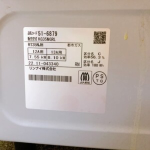 今回は東京都清瀬市にお住まいの40代男性(会社員・単身・賃貸アパート)より、リンナイ ガステーブル KG35NGRLの出張買取をご依頼いただきました。