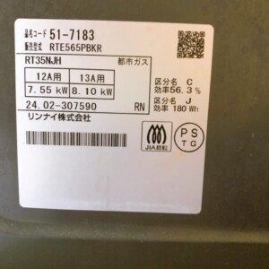 リンナイ製のガスコンロは国内メーカーとして信頼性が高く、中古市場でも需要がある商品です。特に都市ガス対応モデルは単身世帯や賃貸住宅向けとして再販されるケースも多く、再販価値を踏まえて査定を行いました。