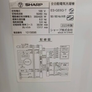 東京都狛江市へSHARP 全自動電気洗濯機 ES-GE6G-T(2023年製)出張買取 全体的に使用感ありのため査定しました