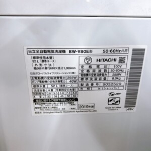 東京都八王子市へ日立 全自動電気洗濯機 BW-V80E(2019年製)出張買取 外観に傷や汚れありのため査定しました