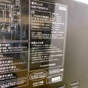 東京都青梅市へ出張買取 アイリスオーヤマ 電子レンジ IMB-FM1803-B 2020年製 使用感ありのため適正価格で査定しました