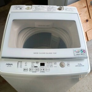 今回は東京都国立市にお住まいの30代男性・会社員・単身世帯・賃貸(マンション)より、AQUA 全自動電気洗濯機 AQW-V7M(7kg)を出張買取にてご依頼いただきました。AQW-VシリーズはAQUAの縦型洗濯機の中でも家庭用として広く普及しているモデルで、7kg容量は単身世帯から二人暮らしまで幅広く使用されているサイズです。中古市場でも比較的流通が多いカテゴリーの洗濯機であるため、状態を確認したうえで査定を行いました。