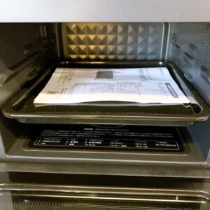 庫内についても焦げ付きや油汚れが少なく良好な状態で、加熱プレート部分も清潔に保たれていました。また取扱説明書も付属している状態で、動作確認でも電子レンジ・オーブン・グリルの各機能に問題はありませんでした。家庭用レンジとして再販可能な状態と判断できる内容でした。