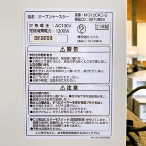 東京都世田谷区用賀へニトリ オーブントースター MG12CKD-2買取 庫内に使用汚れありのため適正価格で査定しました