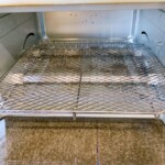 庫内についてはトースト調理によるパンくずや軽い焦げ跡が確認でき、ヒーター周辺にも多少の焼き跡が見受けられました。家庭用トースターとしては一般的な使用状態であり、動作確認を行ったところヒーター加熱やタイマー操作は問題なく正常に作動する状態でした。付属の金網も揃っており、中古品として再利用可能なコンディションと判断しました。