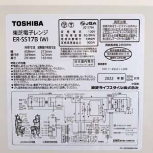 今回は東京都大田区田園調布にお住まいの30代女性より、TOSHIBA(東芝)電子レンジ ER-SS17B(2022年製)を出張買取にてご依頼いただきました。
