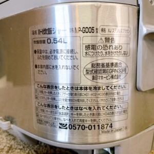 今回は東京都新宿区神楽坂にお住まいの40代男性・会社員(単身世帯/賃貸マンション)より、象印 IH炊飯ジャー NP-GD05を出張買取にてご依頼いただきました。