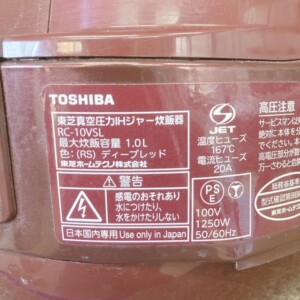 東京都品川区へ東芝 真空圧力IHジャー炊飯器 RC-10VSL 使用感ありのため適正価格で査定しました