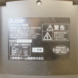 査定したNJ-AWA10-Bは2021年製の炊飯器で、本体外装には使用による軽い擦れや汚れが確認できました。日常的に使用されていた家電ではありますが、目立つ破損や大きなダメージは見られませんでした。