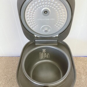 内釜の状態は比較的良好で、コーティングの大きな剥がれなどは見られませんでした。操作パネルの表示やボタン操作も問題なく、動作確認でも正常に炊飯できる状態でした。中古品として再利用可能なコンディションであると判断しました。