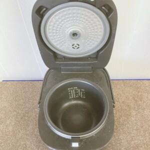 ご依頼いただいたお品物は、Amazon Basicsの3合炊きIH炊飯器 MB-HS2015-Bです。外観には日常使用による細かな擦れや薄い小傷、表面のくすみが見受けられましたが、大きな割れや目立つ破損はありませんでした。内ぶたまわりには使用に伴う細かな汚れの付着が見られ、内釜にも軽い使用感はありましたが、コーティングの大きな剥がれまでは確認されていません。電源コードも揃っており、3合炊きの単身向け炊飯器としては再利用しやすい状態でした。