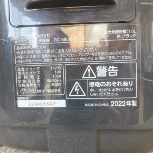 東京都豊島区へアイリスオーヤマ マイコンジャー炊飯器買取 RC-ME50-B 使用に伴う細かな擦れがあるため状態を確認して査定しました