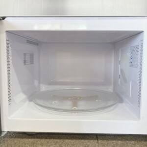 庫内も大きな焦げ付きや油汚れは見られず、ターンテーブルのガラス皿も良好な状態でした。実際に動作確認を行ったところ、加熱動作やタイマー操作も問題なく、家庭用電子レンジとして正常に使用できる状態でした。