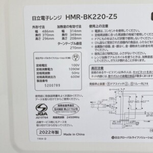 今回は東京都文京区にお住まいの40代男性のお客様より、日立 電子レンジ HMR-BK220-Z5(2022年製)の出張買取をご依頼いただきました。