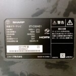 お引き取りした商品はSHARPの液晶テレビ「2T-C32AE1」です。2019年製の32V型モデルで、地上デジタル・BS・CS放送に対応した家庭用テレビとなります。