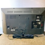 テレビはリビングに設置されており、その場で動作確認・外観確認を実施。32型テレビは中古市場でも一定の需要があり、特にSHARP製のAQUOSシリーズは国内メーカーとして人気があるため、中古品としても流通が見込める商品です。