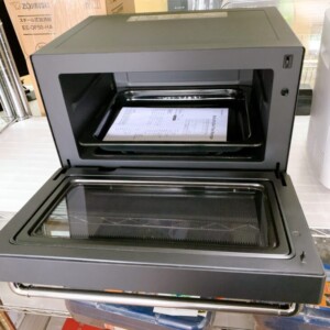 庫内についても油汚れや焦げ付きは少なく、比較的きれいな状態が保たれていました。付属品として天板と取扱説明書も揃っており、使用頻度が少ないことがうかがえるコンディションでした。デザイン家電として人気の高いバルミューダ製品は中古市場でも需要があり、状態が良いものは再販売もしやすい傾向があります。