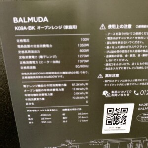 今回は東京都青梅市にお住まいの30代女性(会社員・単身・賃貸(マンション))より、BALMUDA オーブンレンジ K09A-BKを出張買取にてご依頼いただきました。