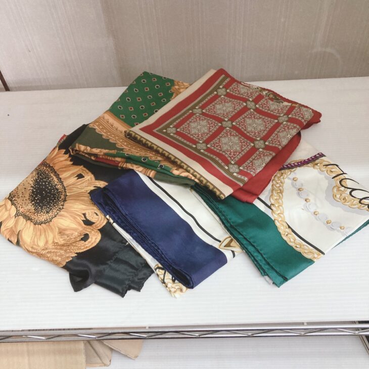 ブランドスカーフはファッション用途だけでなく、バッグのアクセントやヘアアクセサリーとしての需要もあるため、中古市場でも一定の需要があるアイテムです。