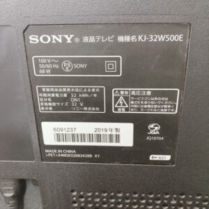今回は港区麻布十番にお住まいの40代女性(主婦・親子世帯・持ち家〈マンション・分譲マンション〉)より、SONY 液晶テレビ KJ-32W500E(2019年製)を出張買取にてご依頼いただきました。