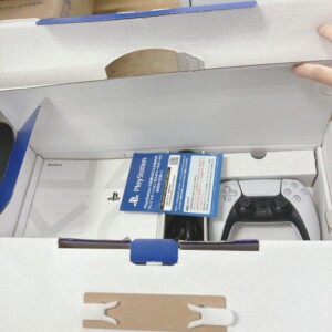 コントローラー(DualSense)も同梱されており、付属品の欠品は特に見られませんでした。ゲーム機本体は中古市場でも需要が高く、箱付きで付属品が揃っているPS5は再販価値が高いため査定対象として評価できる商品です。