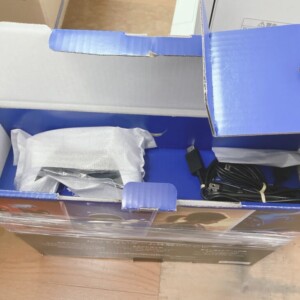 今回拝見したお品物は元箱が残っており、内部の梱包材やケーブル類も揃っている状態でした。箱の外装には保管時の擦れや軽微な角のダメージが見られましたが、大きな破れや水濡れなどはありません。内部には本体保護の袋やケーブル類も確認でき、比較的丁寧に保管されていたことが分かりました。
