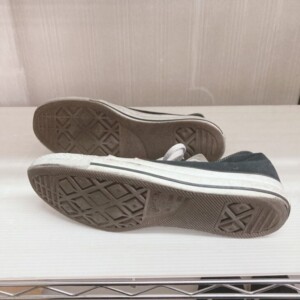 今回は事前にLINEで複数枚の写真をお送りいただいていたため、訪問時には状態確認を中心に進めました。賃貸マンションでのお引き取りでしたが、玄関先でそのまま確認できるようご準備いただいていたため、短時間で査定が完了しました。スニーカーは衣類やバッグと同様に中古市場で流通量が多く、ブランド、定番性、サイズ感、汚れの出方、ソールの減り具合によって査定額に差が出やすいお品です。コンバースのオールスターは知名度が高く需要も安定していますが、その一方で中古流通数も多いため、状態の確認が特に重要になります。今回は人気のブラックカラーで、日常使いしやすい定番モデルであった点をしっかり評価いたしました。
