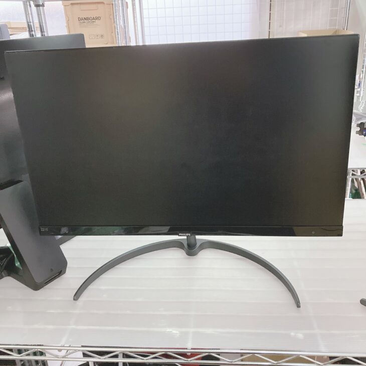 お買取してテレビはPhilipsの21.5インチ液晶モニター「221E9」です。フルHD解像度に対応したディスプレイでPC作業や動画視聴、ゲーム用途など幅広い用途で使用されているモデルです。スタイリッシュなデザインと比較的軽量な本体が特徴でデスク環境にも設置しやすいモニターとして人気があります。使用に伴う細かな擦れ傷が多数見られる状態で、本体のフレーム部分や背面には日常使用による擦れがありスタンド部分にも細かな使用跡が確認されました。ただ液晶パネルには大きな割れや表示不良はなく電源投入後の表示や映像出力も正常に確認できました。入力端子の接続状態も問題なくまだ実用可能な状態です。