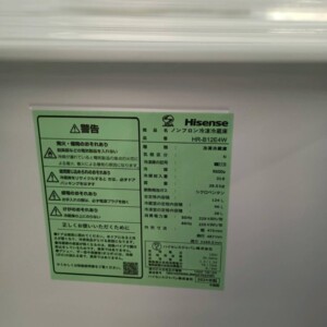 東京都練馬区へ出張買取 Hisense ノンフロン冷凍冷蔵庫 HR-B12E4W 2024年製 使用感の少ない状態のため適正価格で査定しました