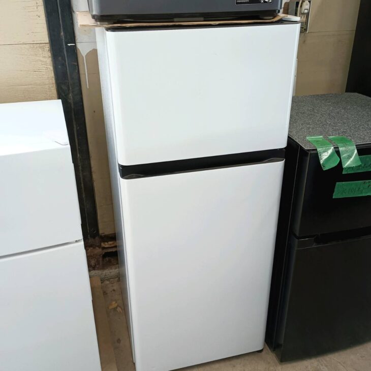 扉の表面には目立つ傷やへこみもなく、動作確認の結果も冷却機能に問題は見られず、日常使用において支障のないコンディションでした。容量124Lのコンパクトサイズで、一人暮らしやセカンド冷蔵庫として需要のあるモデルである点も評価ポイントとなりました。