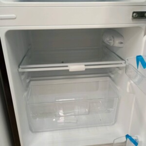 庫内も非常に清潔な状態で、棚板・ケース・ドアポケットなどの付属パーツも揃っており、冷却動作も問題ありませんでした。冷凍室・冷蔵室ともに内部の汚れやニオイもほとんど見られず、丁寧に使用されていたことが分かる良好なコンディションでした。年式が新しいこともあり、中古市場でも需要の高いコンパクト冷蔵庫です。