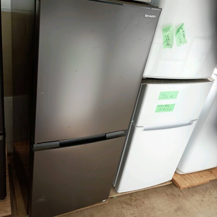今回お引き取りした商品は、SHARP(シャープ)の2ドア冷凍冷蔵庫SJ-D15H-Hです。容量152Lのコンパクトサイズで、単身世帯から少人数家庭まで幅広く利用されている人気モデルです。扉の開閉方向を左右どちらにも変更できる「つけかえどっちもドア」仕様が特徴で、設置場所を選びにくい点が評価されています。