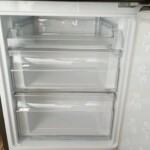実際に拝見したところ、外装には細かな使用に伴う小傷はあるものの大きなへこみなどはなく全体的にきれいな状態でした。庫内のガラス棚や野菜ケース、冷凍室の引き出しもすべて揃っており、内部も丁寧に清掃されていました。温度調整ダイヤルの動作や冷却状況も確認し、冷蔵室・冷凍室ともに問題なく稼働していることを確認できました。2022年製と比較的新しい年式である点も評価につながりました。