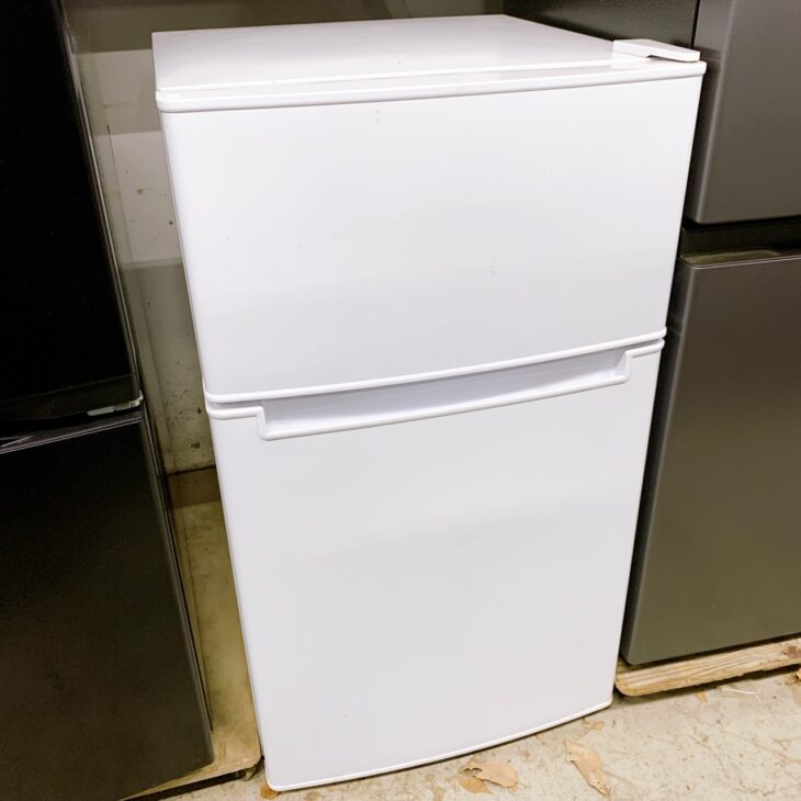 今回拝見したのは、Haier(ハイアール)製のコンパクトタイプ冷蔵庫BR-85Aです。容量は85Lで、上部に冷凍室、下部に冷蔵室を備えた省スペース型のモデルです。ワンルームや寮、事務所などでも設置しやすいサイズで、単身生活向けの家電として中古市場でも一定の需要があります。