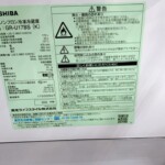 お引き取りした東芝 冷凍冷蔵庫 GR-U17BS(K)は2022年製の比較的新しい冷蔵庫で、全体的に良好な状態でした。外観には日常使用による軽微な擦れや小さな使用跡が見られるものの、大きなへこみや目立つ傷は確認されませんでした。